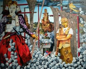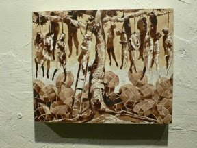 SBA Press Release: “There’s a Billie Holiday song called “Strange Fruit,”about the lynching of African Americans in the Deep South. In a drawing of the same title by Korea-born artist Jarrett Min Davis, the dead bodies hang from a tree like shadows of Billie’s voice. Davis’s work loves to poke at native cultures, teasing old images into new relationships for unexpected meanings.”