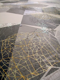 Al: Agreed. The Sondheim is a vital cultural development for Baltimore that the BMA is handling with verve. It’s a handsome presentation that gives one ample air to carefully look into the creative direction and questions of each artist’s work, their importance to Baltimore’s scene, and more to the point, that potential within the international spectrum. This is exemplified in Dawn Gavin’s perfectly placed, succinct, spare map deconstructions that open the show. I found myself looking into the intellectual side of the human condition from another, far larger scale and dimension – a place displaced by a cosmos of tiny, unknowable specifics and laced grids, yet tugging at that universal gut need to identify one’s relationship and location- a theme that has much currency in the often misunderstood art war between generalities and universalities. In her prior gallery shows, that international echo wasn’t what I focused upon. However we personalize maps, they are a highly abstracted form of cerebral logic that, in turn, is at the core of the mind/body disconnect of humanity’s dysfunctional relationship with Earth.