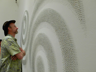 Al Zaruba peruses Dawn Gavin’s installation up close.