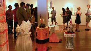 According to School 33, “Death, ceremony, human relations, economics and waste are the main themes that drive the current body of work by Meaghan Harrison, which comes together in the form of sculptures (totemic memorials), collages and the performance piece Trust. As defined, trust is a prediction of reliance, an unwritten code of ethics that is based on what one party knows about the other. The work exhibited aims to communicate our blind faith in everyday confrontations from the state of our economy and beliefs, to our relationships and mortality.