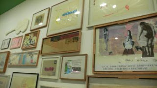 Besides interactive sculpture, there were lots of walls hung salon-style with collages, paintings, and other mixed media works. On the whole, these were messy, silly, and often, downright hilarious. I loved the informality of this show. I think this committment to imperfection is inspiring for all types of people.