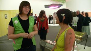 This is one of the opening reception volunteers posing on the sculpture. How can we tell she is at work? The snazzy vest. Get it? Vest? The artist’s name is pronounced Franz Vest. I think the BMA is punning.