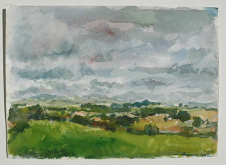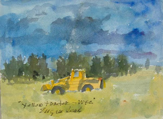 And yet we recognize the sure-handed attack, the immediacy of impression, and the lush, saturated color, even in this most delicate and unforgiving medium. Whether it’s the brooding, bruised clouds ready to drench the Irish countryside or an abandoned yellow tractor overgrown with weeds in a Wyoming meadow, the sensibility rings true.