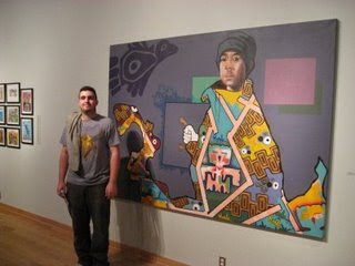 John Horner: The piece that struck me most was International Affairs by Christian Braneon. The piece, which was a visually sparse flow chart painted on the wall, is a representation of the access to and consumption of a clean water supply in Honduras. The chart was the product of a 10 year study based on the factors of fear, economy, and disease. I liked this piece because it actually presented a real with situation where our response wasn’t just based on aesthetics. As a whole I found the show to be better after a glass of wine, allowing to the paintings to become more vibrant, and the pornographic scanning device more amusing.
