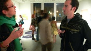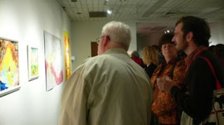 Artist Bonner Sale explains his work to some interested art patrons?