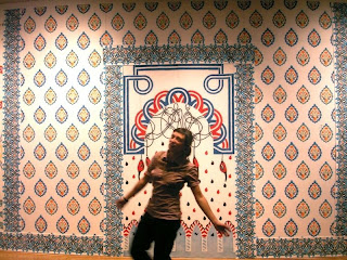 Liz Ensz designs large scale politically-themed patterns that are inspired by the floral motifs and geometric structures typical of Islamic architecture and decorative art. Her interest in repetition and variation act as a metaphor for the conformity of people within a group or, on a larger scale, corporate globalization and enforced consumer assimilation. Ensz currently resides in Baltimore, MD where she received her Bachelor of Fine Arts in Fibers from the Maryland Institute College of Art in 2005. That same year she was awarded the prestigious Jacques and Natasha Gelman Travel Award to study Moorish design in Spain and has since exhibited her work in numerous venues across the United States. http://lizenszgallery.blogspot.com/2006/09/silkscreen-on-fabric.html