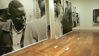Large prints of Avedon portraits with Wounded Cities exhibit below.