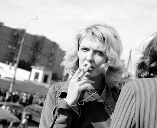 Rubinfien employs an extremely shallow depth of field to reinforce the solitude of the individual within the crowd. Tokyo, 2002, at Shibuya Station, one of three color prints in the show, features a baby-faced woman with cascading blond hair staring vacantly at the camera while a blurry throng swarms around her. For Istanbul, 2004, at Taksim Square, which portrays a group of young men, Rubinfien tightly cropped the image to highlight features such as a furrowed brow on one man’s face while filling the rest of the frame with pixelated noise.
