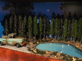 Lights off and light’s on (below): views of Audrey Collins Petrich’s diorama / sculpture: ‘Night Fishing.’