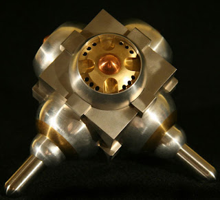 Imagine Chris Bathgate’s work on steroids and you’ll get an idea of what this ambitious sculptor has been up to. The new work is massive in comparison to the pint-sized creations we’ve seen in the past. His methods parallel that of a lab scientist, inventor or mathematician. Years of experimentation and problem solving have resulted in larger sculptures and bigger ideas. This self-taught mechanist has perfected his craft.