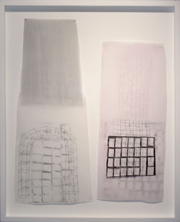 Dana Reifler Amato’s multi layered drawings are made using architectural paper, oil bar, graphite, gold paint pen, cut paper and gold leaf. Always obsessed with the action of cutting, pinning, constructing and deconstructing, this artist seems to be at constant unrest. Her most recent creations deal with architecture and holy spaces. Abstracted and simplified forms explore cathedrals, naves, transepts and other structures. Curved grids and repetitious line work have become trademarks.