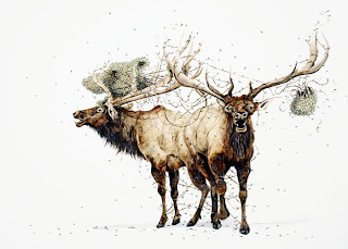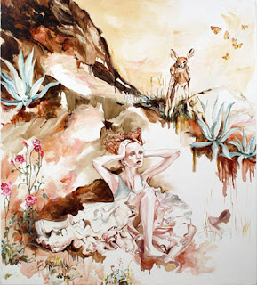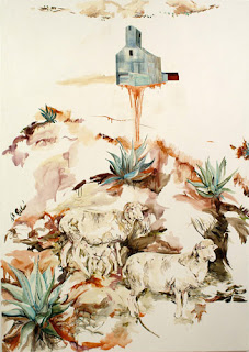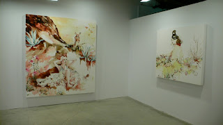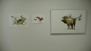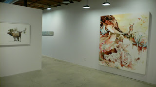 The back room featured drawings by Ryan McLennan, and paintings by Anne Siems and Elisa Johns. Lots of flat white space punctuated with subtle color, odd narratives, and combinations of pop culture with more classical aesthetics.