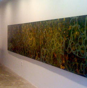 The Payson works were modular and stretched across several surfaces and were lovely, but I preferred the mess in the back. For more info, go to www.walkercontemporary.com.
