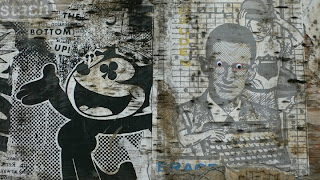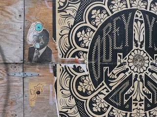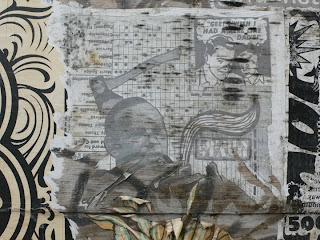 This is Shepard Fairey-inspired graffiti in Chinatown. The Shepard Fairey show was at the ICA, so there were tags, billboards, and stencils all over the place.