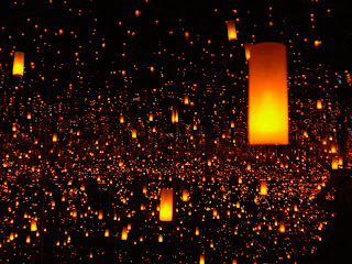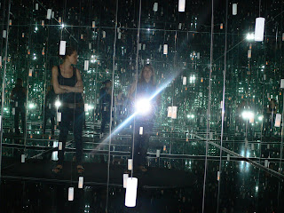The Chelsea Pier above and an installation of ‘Infinity Room’ – hanging lights and mirrors by Yayoi Kusama at Gagosian Gallery.