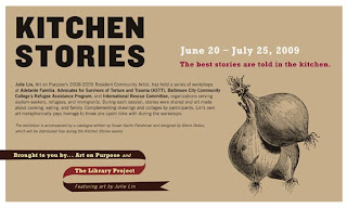 Julie Lin, Art on Purpose’s Resident Community Artist, who also conceived the project, implemented a series of workshops at local social service organizations working with adult refugees, immigrants and asylum seekers in the Baltimore community. During each three-hour workshop, clients of Advocates for Survivors of Torture and Trauma (ASTT) and other organizations serving immigrants, refugees and asylum seekers, including the International Rescue Committee, Adelante Familia and Baltimore City Community College’s Refugee Assistance Program, engaged in a variety of cooking and collage workshops and events.