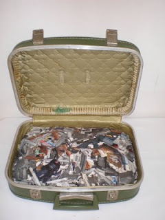 DB: I showed three pieces at the Conner show; ‘Pigs Feet’ which is a group of paraffin wax molds of pig’s feet, “Guns” which is a small suitcase filled with images of guns cut from magazines, and an untitled piece in which I opened thousands of toothpick parasols (otherwise known as cocktail umbrellas) and dropped them into a large pile that accumulated into a column of umbrellas raising to the ceiling. All these pieces are dealing with specific objects and the multiple. They are all different objects so I have to go about the pieces in different manners yet they all have an action that goes along with them.