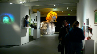 April: During Laure’s gallery talk she revealed that She-Pod, the large greenhouse folly, was not complete. There were kinks that were not able to have been resolved and some editing had to be done to the piece. I guess I always thought that “real world” professional artists didn’t have to stay up all night the day before the show putting finishing touches on pieces and that somehow things magically came together or that having studio assistants and years of experience makes it easy. I discovered that the process of making work is complicated at many different levels.