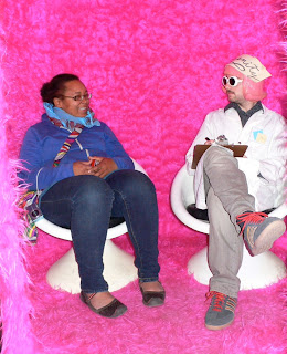 April: During install Laure wore a flight suit everyday. The Sunday before the show was opening a few of us came in to help finish decopage-ing She-Pod– the orgasmic greenhouse folly. At lunch time Laure and her sister Connie (who traveled from India to help out) offered to grab us coffee and snacks while they were out. Someone commented on her flight suit as she was leaving and Laure’s response was “All you need is a jumper, a little lipstick, and a pair of sunglasses” as she was adjusting her blue faux fur fedora before heading out. When I saw this photo http://www.bthesite.com/wp-content/uploads/2009/02/drogouldollyopt.jpg, I chuckled to myself and I know that whenever I think of Laure I will always picture her looking like this.