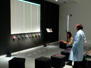 Also, we all took a group trip to new york to the Conflux Festival to see Laure’s apparatus for orchestral knitting in action to help us get an idea of what her work was like and how she worked. After her performance we sat in Washington Square Park on benches and had a nice long conversation with Laure about her work and what she likes to try and get an idea of how she thinks and works.