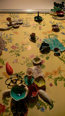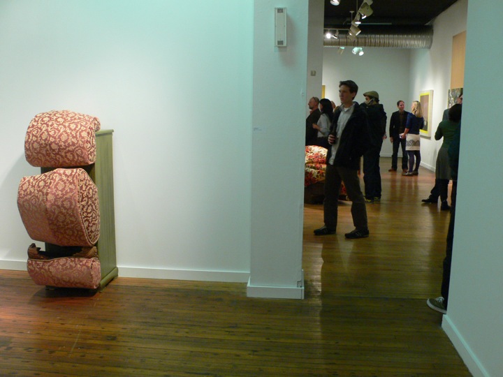 “The works in this exhibit reconsider the questions of art as décor, and décor as art. These four artists consider their creative output and its relevance to space, aesthetic, and taste. They perceive and appreciate the prospective place in which their artwork will reside. Like the pop artists, they remove familiar from its context and isloate the objects to provide contemporary interpretations and definitions of fine art.”