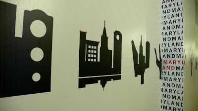 MAP offered this creative opportunity to graduate students working with Ellen Lupton, director of the Graphic Design MFA program at Maryland Institute College of Art. Artist collaborators Lauren Adams, Christina Beard and Christopher McCampbell responded to MAP’s vision for broader community engagement in their site-specific design. Conceived for the hallway that leads to MAP’s galleries, Reinvent represents innovation and change in a series of shifting motifs. The linear cut-vinyl display begins with a city stoplight, and continues through evolving emblems of nature and culture to end in a wall-sized 3-D digital network.