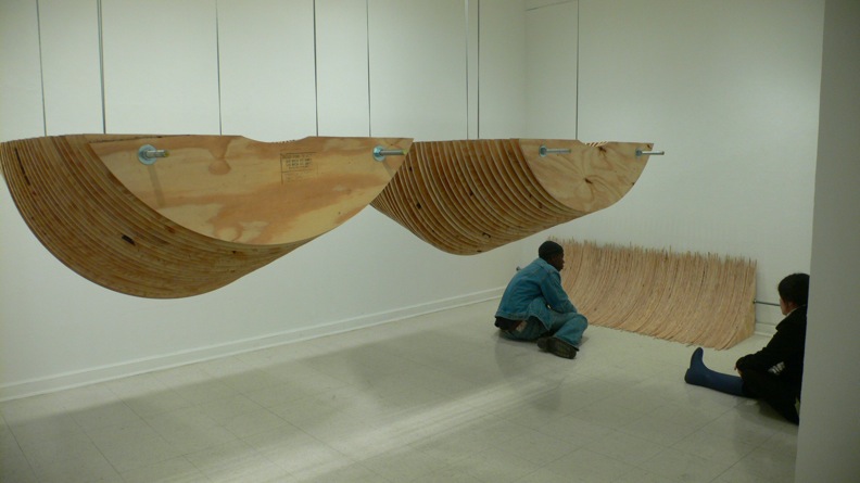 (Note: Graham Coreil-Allen’s Public Sites thesis project has select tour dates. Click here for more information. And Deng-Yao Chang’s Gallery Intimacy Acts performance piece invites the public to sleep over in the Decker Gallery. Click here for more information.) For an online slide show of artwork in this exhibition, click here.