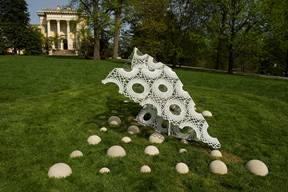 Ten thought-provoking installations of temporary, large-scale, site-specific artwork have been created for the 26-acre grounds of Johns Hopkins’ Evergreen Museum & Library as part of the exhibition Sculpture at Evergreen 6: Simultaneous Presence, opening with a public reception from 1 to 4 p.m. on Sunday, May 2.
