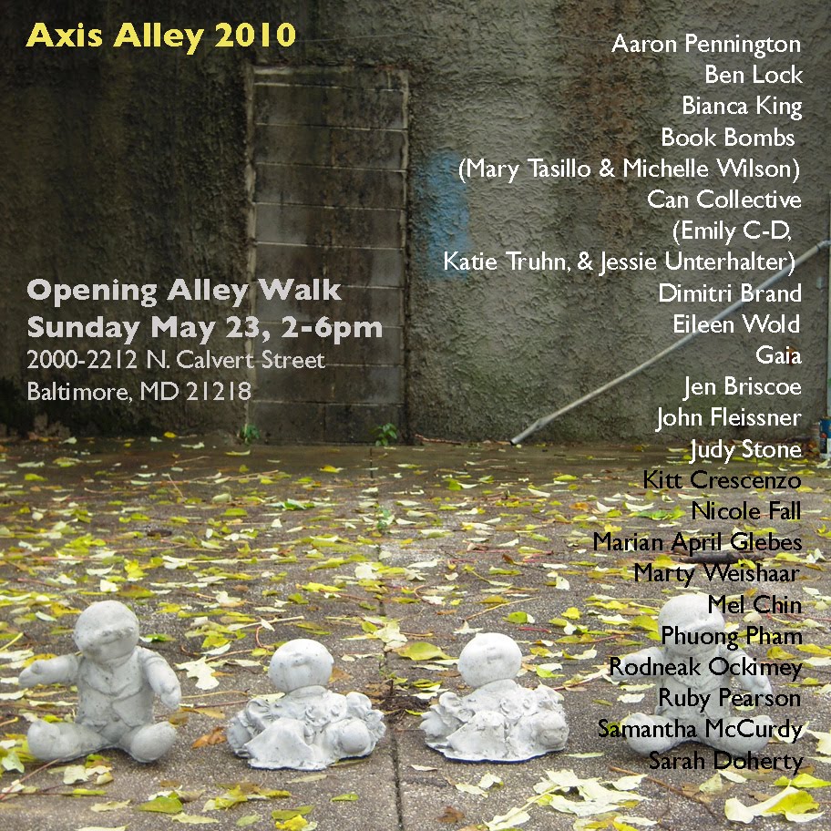 If you cannot attend on May 23rd, Axis Alley will also be being toured as part of the “Barclay’s Back!” celebration on Saturday, May 28th from 11-2 pm, sponsored by the BMOG coalition. Axis Alley is also being included as a tour stop for the American’s for the Arts Conference being held in Baltimore this year on June 26th. Artworks will continue to go up until that day.