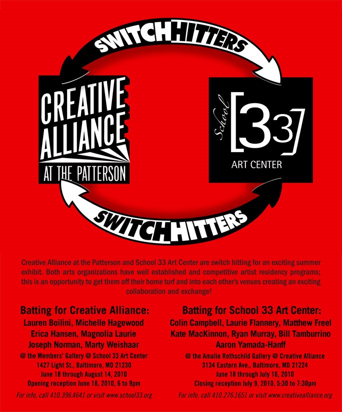 Switch Hitters at the Creative Alliance and School 33 June 18 & July 9