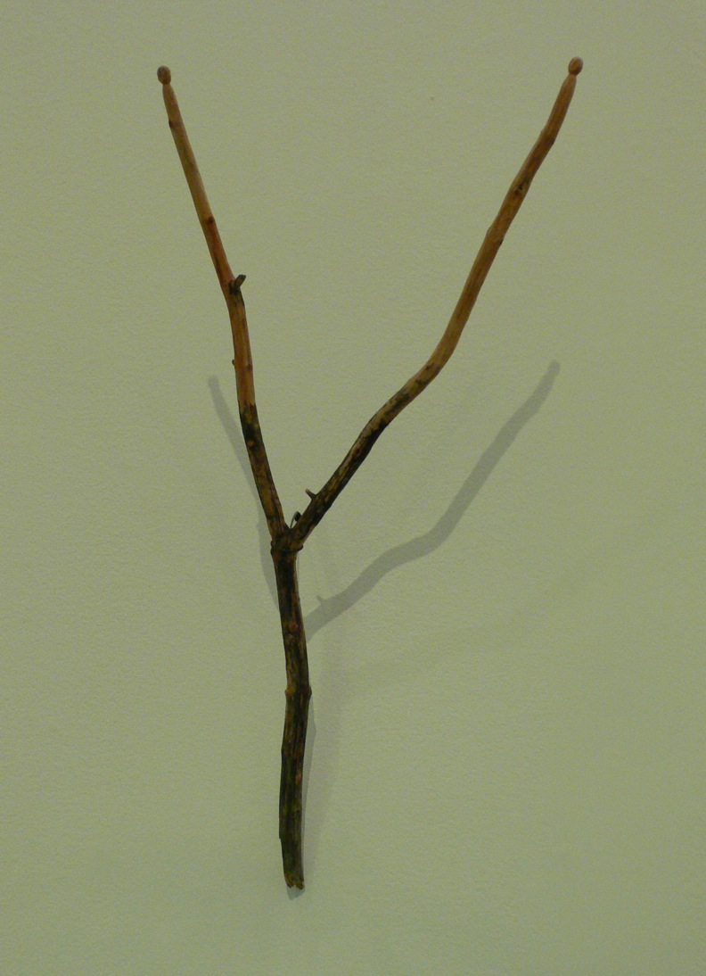 Christopher LaVoie is the first artist you encounter when you enter the Sondheim Exhibt, and I found him to be a complete surprise. While many of LaVoie’s sculptures have a mundane, and even boring, appearance, closer inspection reveals a delightful range of unexpected and subtle twists. In ‘Folked Drumsticks’ (pictured above) a found, forked tree branch is carved at the end into drumsticks, which are polished with bronze. In ‘Lumber Crying,’ (pictured below), an ordinary piece of milled lumber appears to have tiny droplets coursing down it’s side, somehow carved out of the same wood. It’s subtle, but thrilling to discover.