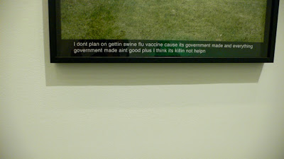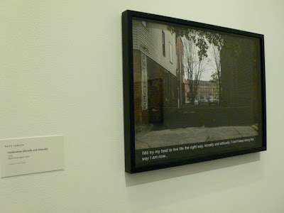 I am not sure what to say here, as Porterfield issued a preemptive apology about his work: it’s not done and the video piece below was going to be replaced. On Friday, I did not have time to sit down and watch ‘Hamilton’ in it’s approximately one hour entirety, so at best I did a quick scan of the two dark rooms, and moved on. In the context of an art museum, ‘Hamilton’s’ quiet and painterly visions seemed to question the boundaries between artist and filmmaker, between painting and film. His characters are not movie star gorgeous, but his subtle side lighting bathes them in a glow and quietude not unlike a Vermeer.