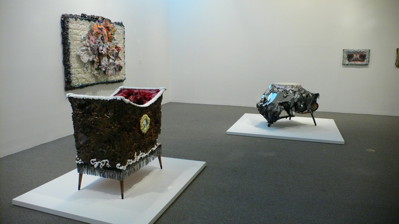 There is a lot of hooplah and ornate frou-frou going on here, and I’m not sure where it is all going. The artist certainly knows how to combine disparate materials together in surprising and physically moving ways, but there’s also something empty and ornate about this, a big wow factor without specificity to back it up.