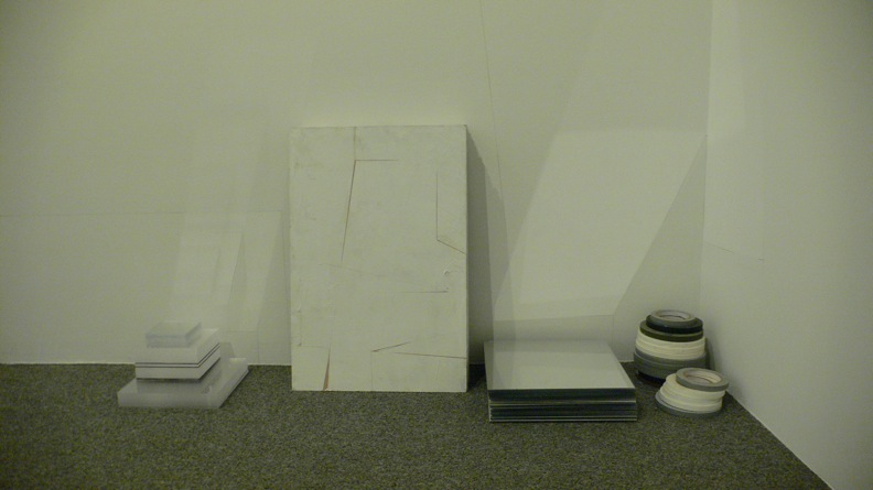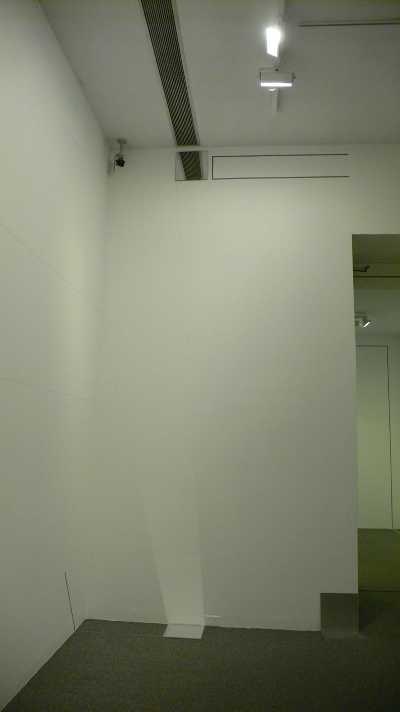 Leah Cooper is a young artist who has gracefully stepped up to the plate, without altering her unique vision. Cooper employs a consistent and inquisitive way of seeing, then excises the small details from mundane architecture, intellectualizing it in the process. If you saw her two-person show at the Theatre Project this spring, you will remember those same mirrors, architectural pencil lines, and neutral lines of tape. While effective in that space, a larger gallery with taller ceilings might benefit from larger mirrors and an adjusted scale or intensity of line.