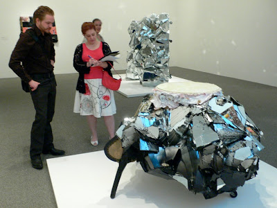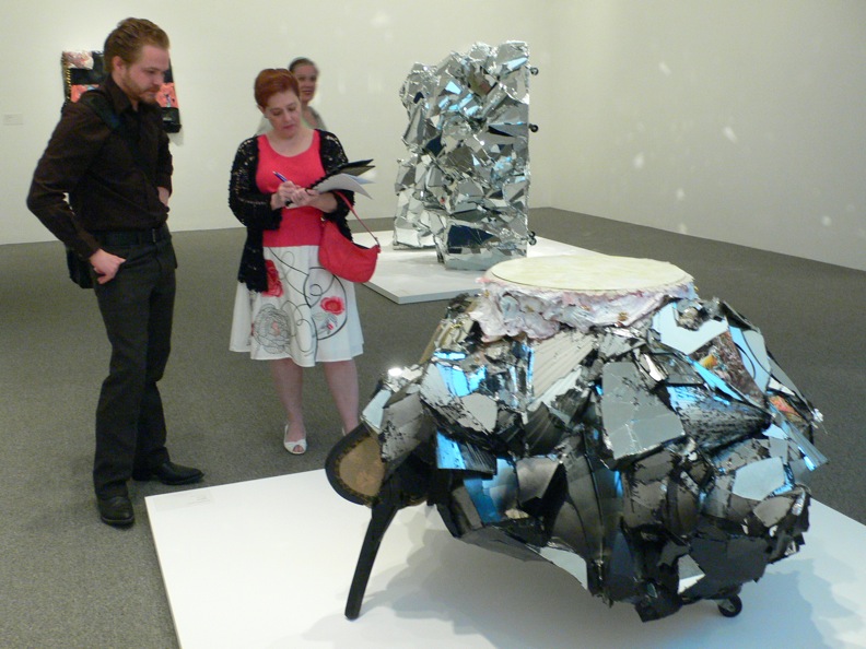 According to the BMA, Janson’s hybrids employ “a tension between light-heartedness and menace,” which is best realized in his most absurd works. ‘Parlor Rat’, (pictured below) is a combination of upholstered furniture, broken mirrors, and some other goop ( I don’t know what else went into it, because the artist described all his pieces as ‘mixed media, which is really annoying) and, in it’s absurdity, approaches an interesting balance of creature, furniture, and garbage pile, and seems animated.