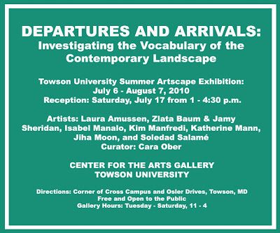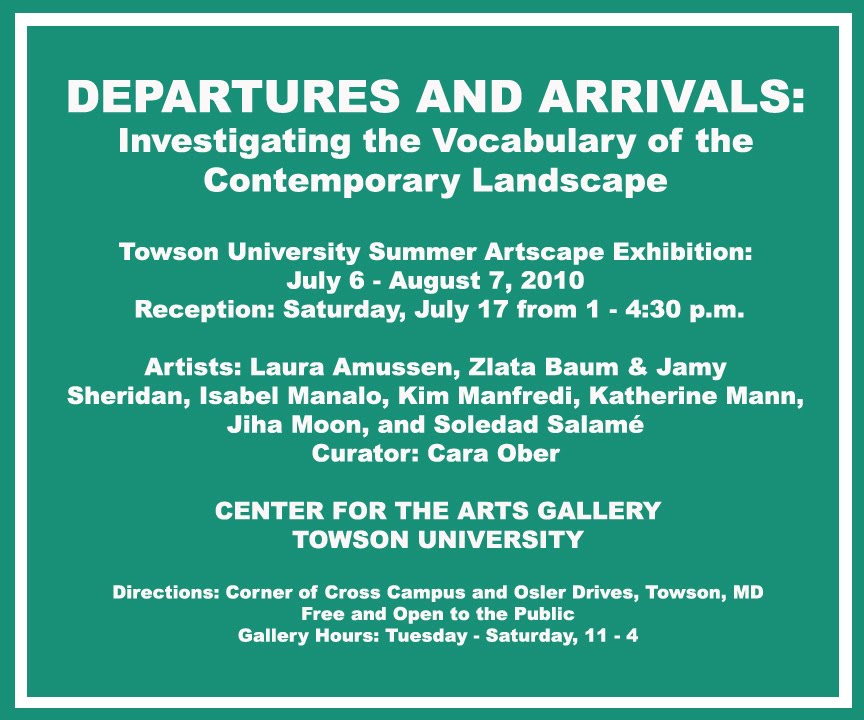 Departures and Arrivals features artists who cull visual elements from the traditional landscape, but do not make work about the natural world. Rather, the artists harness the familiarity and immediacy of the biological realm in order to explore personal memory, psychological states, and non-physical modes of place. This exhibition features six artists and one collaborative team who distill the vocabulary of their natural surroundings into a succinct and personal vision.