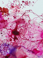 In a large wall installation and her recent digital prints, Hagewood dives into worlds of marine microbes, rainforest undergrowth, and urban understructures – micro- and macro-cosmoses that are on the brink of bursting or collapsing. With pseudo-scientific exactitude, she combines drawing and digital manipulation, pushing and pulling, researching and processing the forms and behaviors until they are barely recognizable for what they were, mysterious worlds pointing to the beauty and failure inherent in humanity’s quest for control.