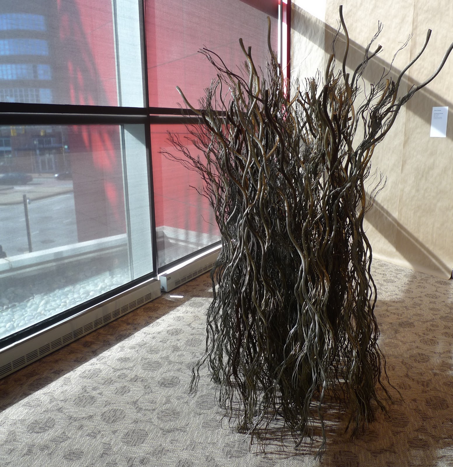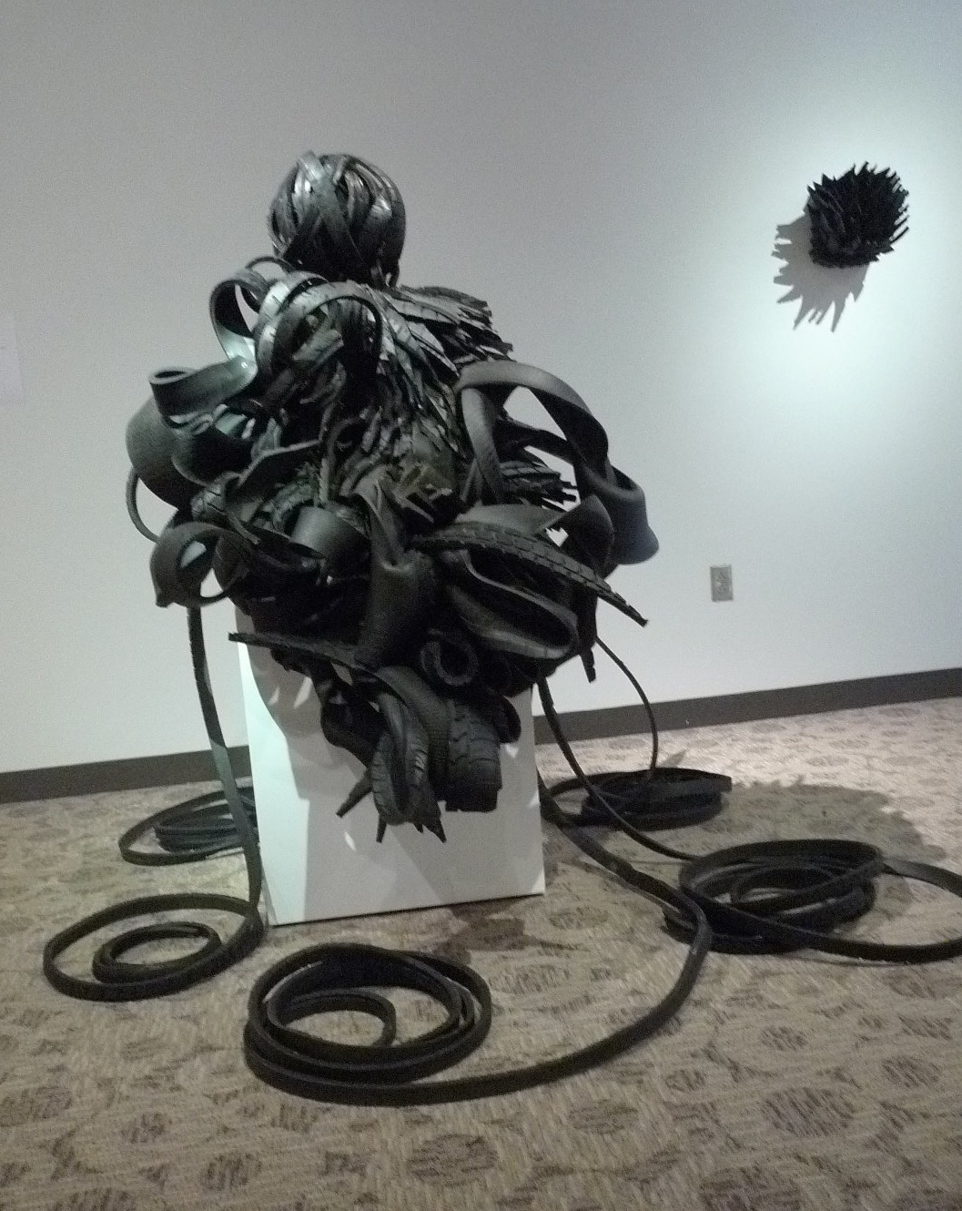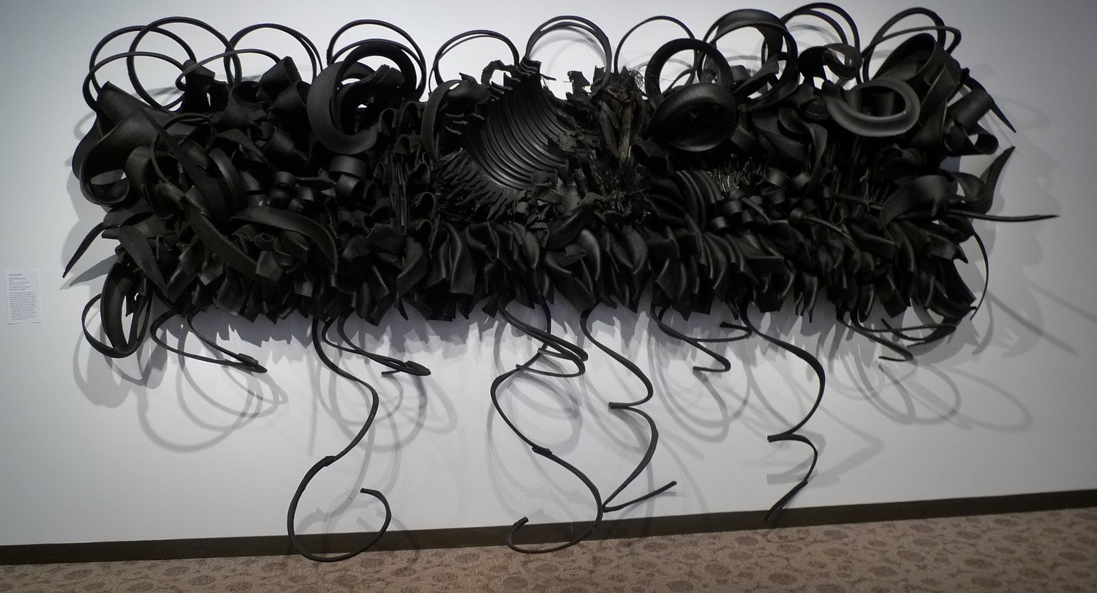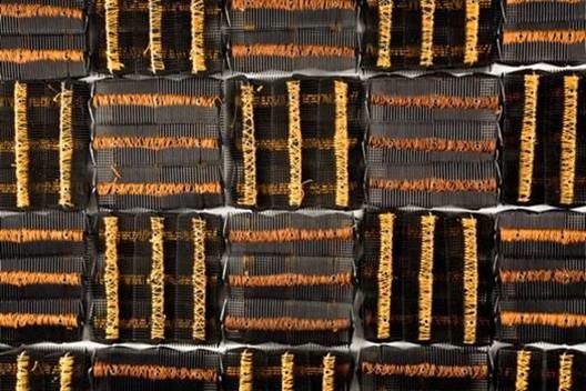Crumbling bricks, slashed tires, plastic barbershop combs, old newspapers. They sound like items you’d expect to find in a landfill. But despite their lowly status, they can communicate cultural values, personal remembrances, and political statements when wielded by a skilled and purposeful hand. Ordinary materials transformed into extraordinary pieces of art is the emphasis of Material Girls: Contemporary Black Women Artists, the newest exhibit at the Reginald F. Lewis Museum, which features work by Maya Freelon Asante, Chakaia Booker, Sonya Clark, Torkwase Dyson, Maren Hassinger, Martha Jackson Jarvis, Joyce J. Scott and Renee Stout.