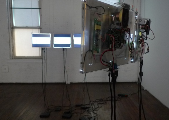 In Hypotheses, Holtin, a sculpture professor at American University in Washington, D.C., explores this line between the mechanical and the emotional, the artificial and the authentic. The show includes seven works created from a number of different materials, including cardboard, wood, paper, computer screens, and hand-built machines. Rather than obscuring the mechanisms and processes behind his constructions, Holtin prefers to incorporate them, adding an aspect of performance and theater, and enticing his viewers to construct their own narratives and impose meaning. To read the entire article on the Urbanite Website, click here.