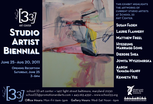 This exhibit highlights the work of current Studio Artists during their tenure at School 33 Art Center. Since 1979, the Studio Artist Program has provided exceptional studio space at subsidized rates to more than 125 professional artists. In 2008, School 33 established the Studio Mentoring Program, which facilitates studio critiques and professional development for our resident artists. By inviting prominent artists and arts professionals from the mid-Atlantic region to conduct one-on-one studio visits, our goal is to provide support and constructive feedback in helping artists fulfill their creative path.