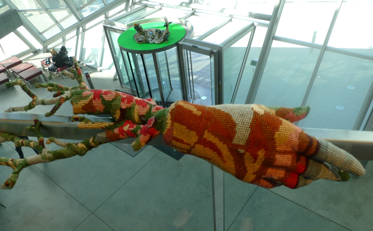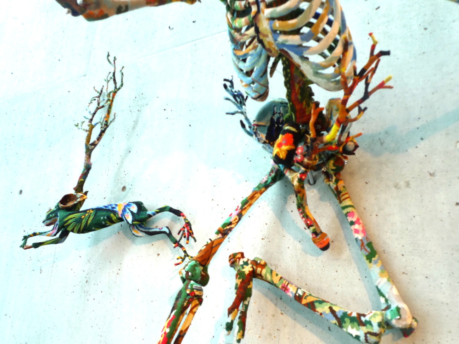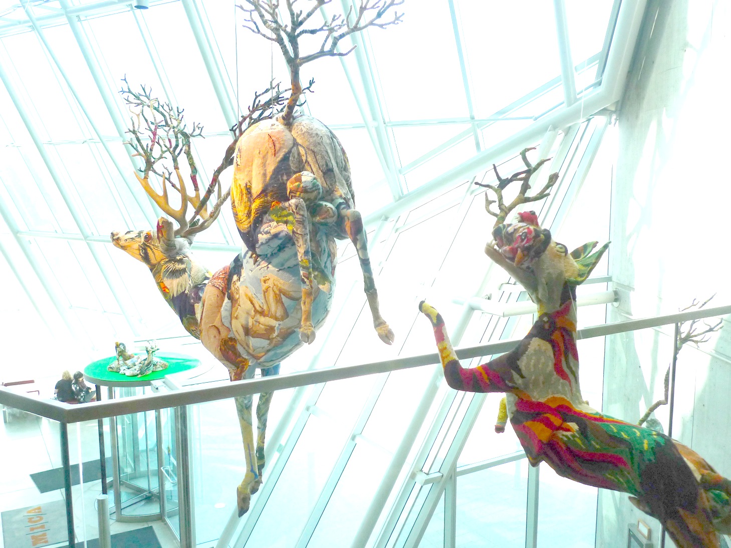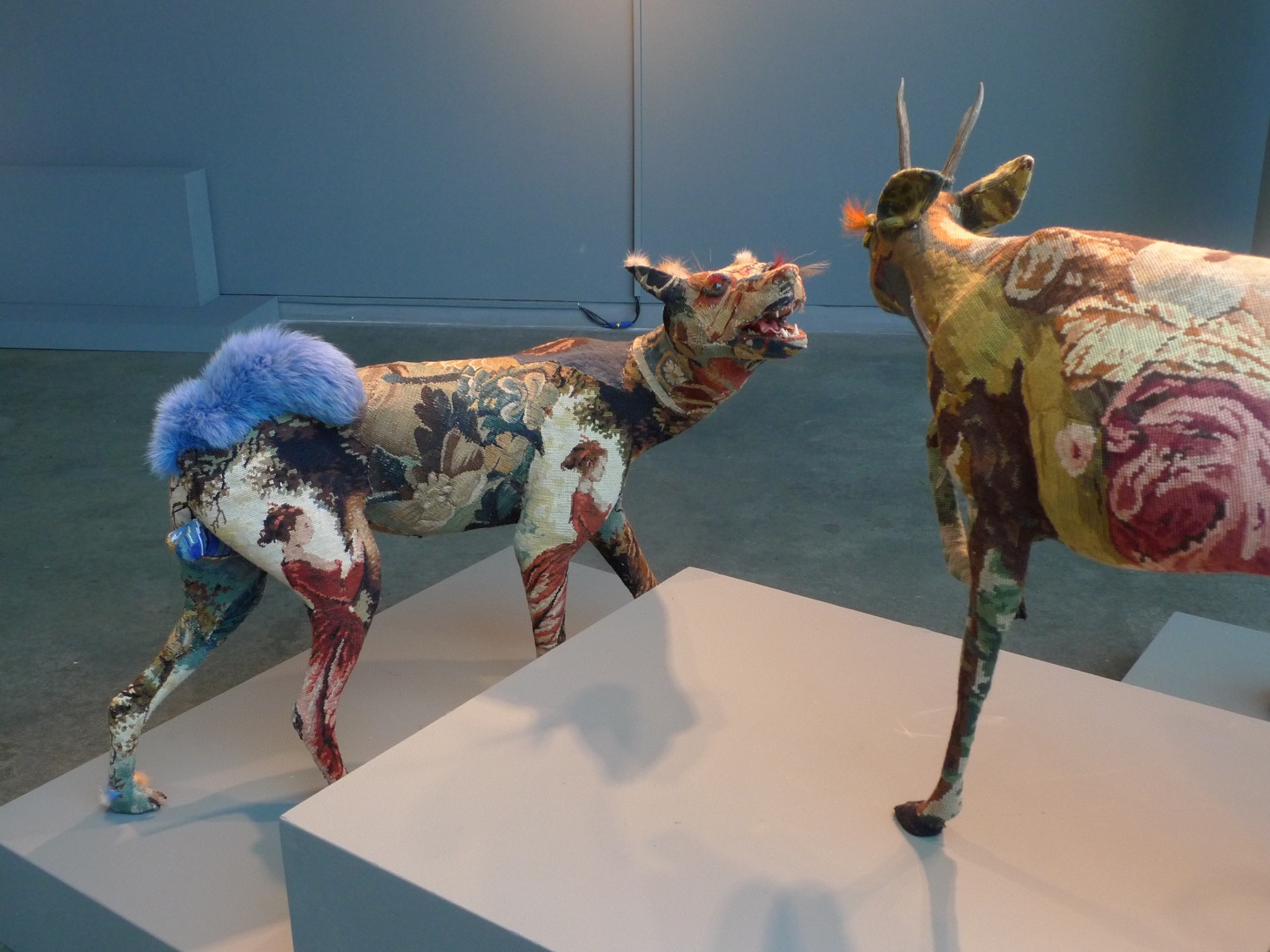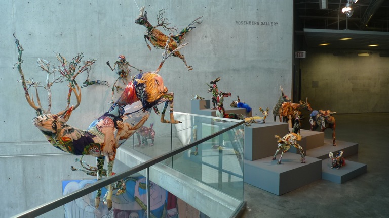 According to MICA, this exhibit is “an evocation of possible global collapse and catastrophy.” Huh? Really? Because a few of the animals are tumbling around and, possibly, depicted in mid-fall? According to the artists, they are questioning, “Will the exhibition be a final fall or a new flight? Will a better world emerge from this ‘collapstrophe?'”