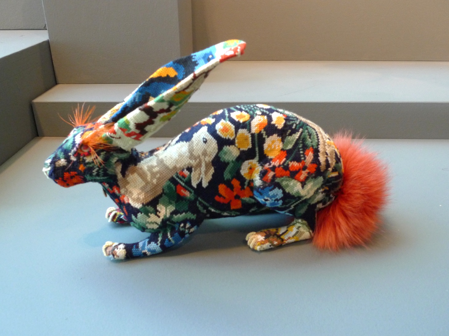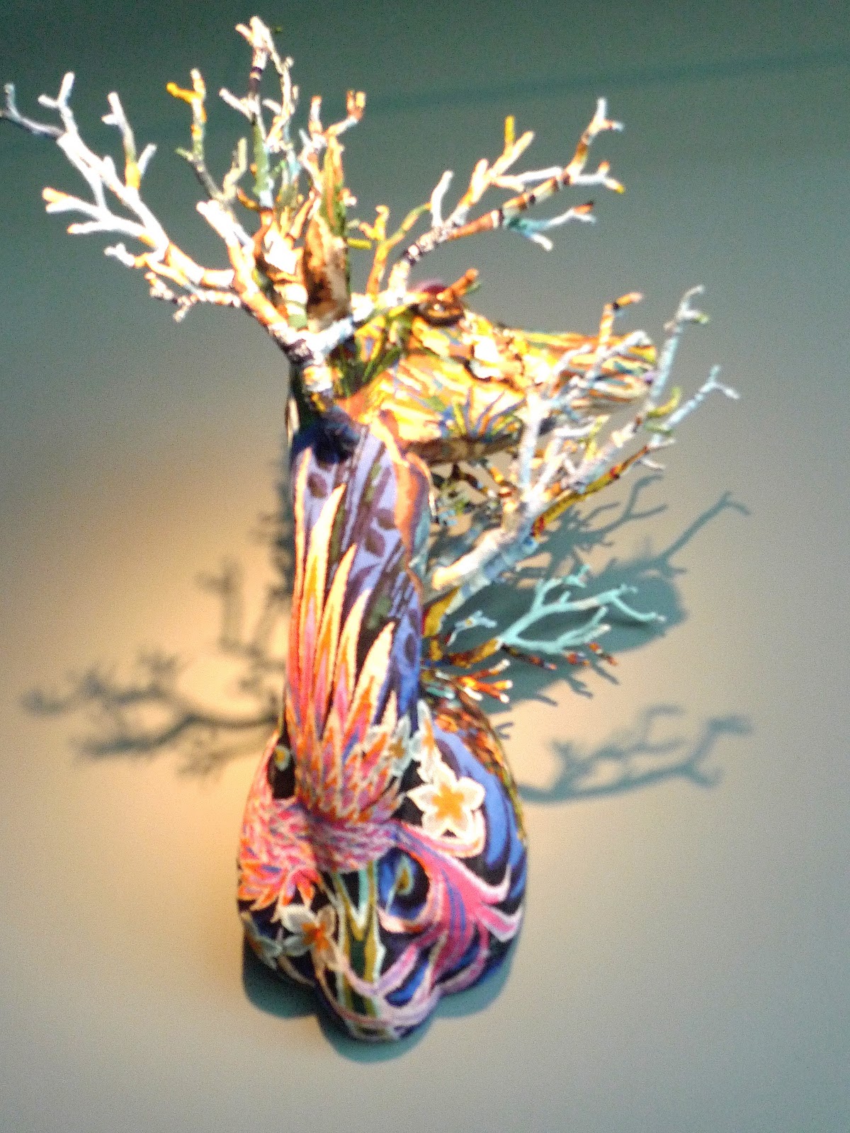 Um. Maybe something was lost in the translation from the French, because this doesn’t seem particularly accurate to the riot of kitchy pattern, luscious textures, and elegant, decorative forms I observed. To me, these works are celebratory, brash, fantastical, and unapologetically so. That’s what I like about them.