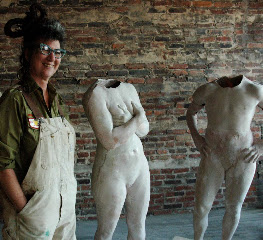 Her studio is located on the second floor of a warehouse and she sets the tone for the visit when you walk up the stairs. “As you walk up, you are surrounded by a huge collection of mannequins,” she says. “They are used as parts for my museum figure business. Off to the right, I have a workshop where I do life-casting and sculpting. I have several projects going on so there are sculptures and castings in all phases. As you walk back beyond the mannequins—which are intermixed with several different styles of museum figures—there is my painting studio. The walls and floor are overflowing with paintings.”