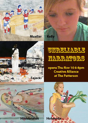 Former CA Resident Artists Megan Hildebrandt and Christine Sajecki join with Sara Holwerda, Sarah Kelly, and Ellen Mueller to play in the new landscape of storytelling, adding a few nails to the coffin of the “official” voice, jumping off the diving board of satire, and perhaps – just perhaps – suggesting that art offers the best way through.