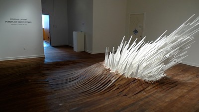René Treviño is a local artist, represented by the C. Grimaldis Gallery, and exhibitions director at School 33 Art Center, a local nonprofit art space. According to Treviño, “My favorite exhibit of 2011 was, hands down, Points of Contention, a major installation by Jonathan Latiano at School 33 Art Center. Perhaps I am biased, because he is a former student and because I got to see the whole process from preliminary drawings to completion. But, this project was MAJOR. The artist created a rippled floor over the real floor in the gallery and then created a crystalized sculpture that looked as though it was crashing through it all. It was part-Superman’s Fortress of Solitude, part-meteor, part-scientific experiment, and just really awesome—a well-executed spectacle.”