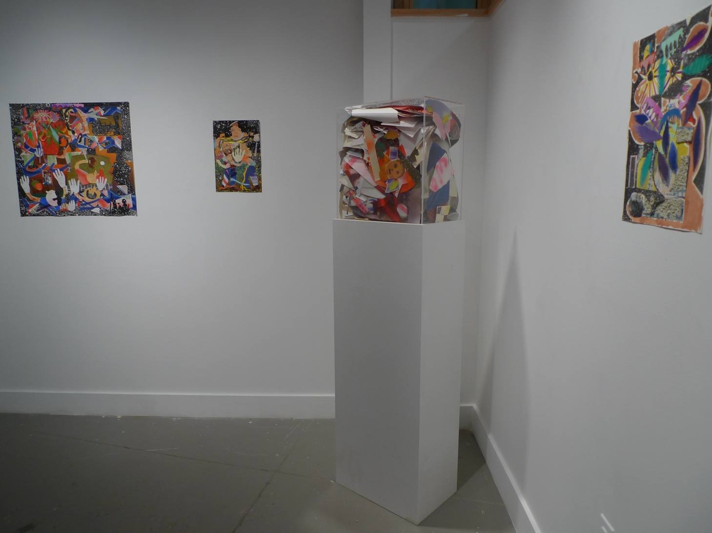 Where we come from and where we reside are two of the most significant pieces of information about a person. The three artists in this exhibition have experienced the sense of adventure and displacement inherent in moving to a new city. Each finds that the spaces they occupy influence their thinking and behavior and, most especially, their creative pursuits. The paintings, collages, digital and three-dimensional art in this exhibition are a testament to the variety of ways Riddle, Danielsson-Yung, and Chu make sense of their surroundings, using art as another language to find their way in a new and unfamiliar place.