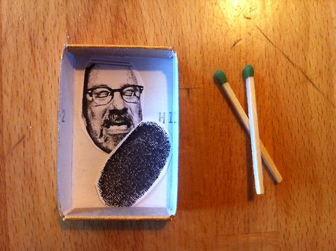 I’m no visual artist; I can barely dress myself or draw a straight line. But I spent 20 minutes working on one such assignment, from the artist Paul Thek, who died in 1988. His directive: “Design a work of art that fits in a matchbox.” So I’ve made a Xerox of my face and my thumbprint, each roughly of equal size, and put them where the matches used to be. Eat your heart out, Joseph Cornell.