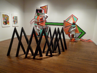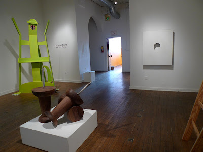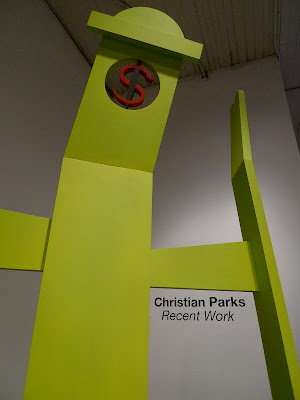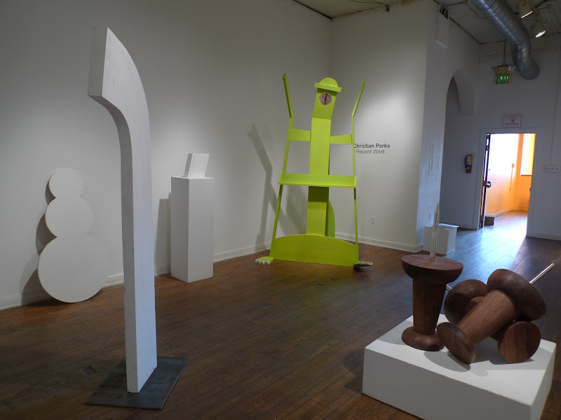 Christian Parks transcends the banality of simple, familiar objects such as easels, notebook paper and cinder blocks by manipulating their forms, experimenting with color and altering their scale and proportions. By visually isolating these forms from their original context and placing them within the white walls of the gallery, his brightly colored and playful sculptures and paintings transform the mundane and evoke a sense of humor and wonder.