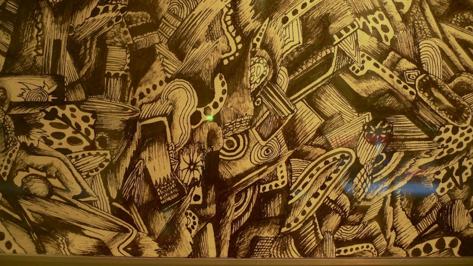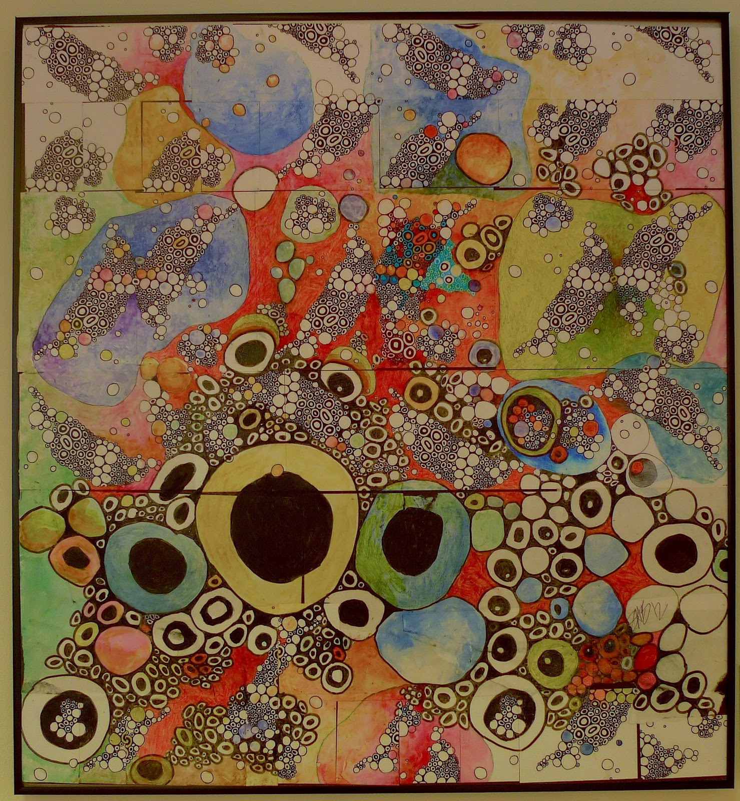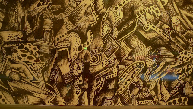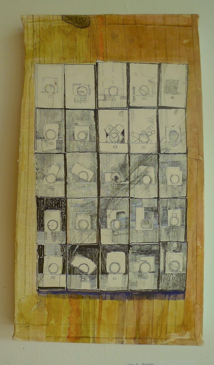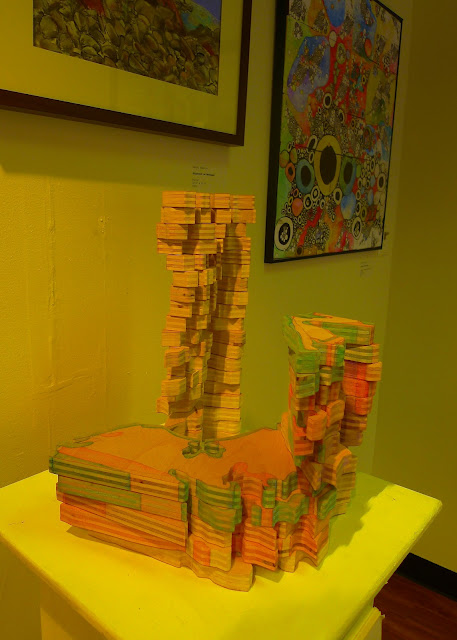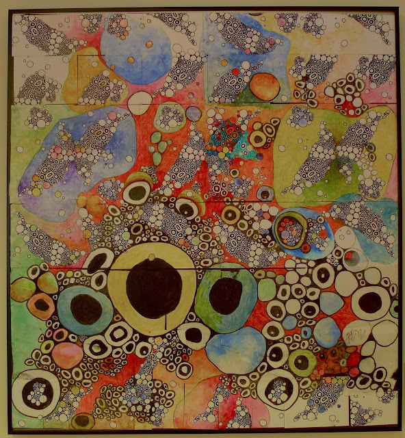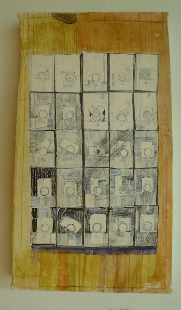 When choosing works for the show, the curators’ goal was to present a variety of approaches to drawing and to create an inclusive atmosphere for artists. From my perspective, they were successful on both counts, although it is always a visual challenge to display such divergent works all together. click to enlarge Brook Sturtevant-Sealover. The Notation of the Allocation of Consumption and Progress1C. Colored Pencil and Graphite on Plywood. “It’s been great getting to know so many new artists,” says Devin Mack. “We have gotten many positive responses already about the exhibit and the work.”