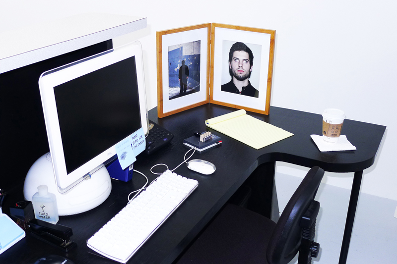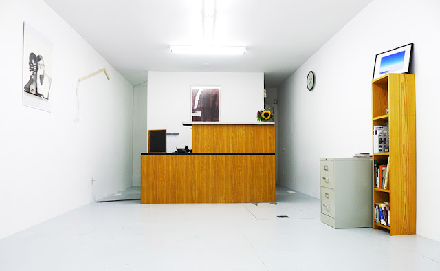 Vampire Travel Agency, the exhibit, is a group show with an impressive roster of artists from New York, Los Angeles, and Baltimore, but what’s interesting about the show is that you can’t tell the art from the other non-art props. The show features drawings, paintings, and sculpture by Milano Chow, Bea Fremderman, Pete Halupka, Rachel Lowing, Kat Schneider, Hayley Silverman, Colin Van Winkle, and Jee Shaun Wang, but the art is displayed like desktop tchotchkes, in cheap poster frames, and on bookshelves, rather than a white-wall-and-podium approach. The result is playful and surreal, a world in which one’s desktop family photos have poltergeist eyes and the water cooler is filled with a dark, maroon-colored substance that just might be blood.